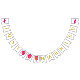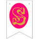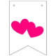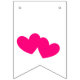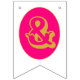 Guld JUST MARRIED vimplar, initialer och magenta hjärtan på vit bakgrund. En mångsidig banner eller vimplar för de flesta bröllop på grund av färganvändningen med guld bokstäver och magenta hjärtan på vit. Den första vimpeln har magenta dubbelhjärta, följande vimplar har texten "JUST MARRIED" med parets initialer. Den sista vimpeln har återigen ett magenta dubbelhjärta. Anpassa dessa vimplar med dina bokstäver för din stora dag.