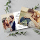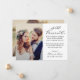 Meddela er make med denna romantiska manusfoto bröllopsannons som innehåller "Nyligen gifta" i flödande vit kalligrafi över hela ditt foto. Namn och bröllopsdatum visas med en söt hjärtaccent. Baksidan innehåller ett andra foto och en anpassningsbar bokstav som delar detaljerna om er intima ceremoni. Byt ut foton och anpassa all text för att skapa den perfekta minnessaken för nära och kära.
