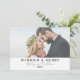 Fira din första jul som nygifta genom att dela din glädje med nära och kära med detta enkla och minimalistiska julkort. Utformningen har frasen "Married & Merry" på framsidan och inkluderar era namn och bröllopsår, vilket gör det till ett perfekt sätt att fira detta speciella år. Kortet visar två av dina favoritfoton - oavsett om de är från er bröllopsdag eller andra kärleksfulla ögonblick ni delat - med en subtil vit transparens för en eterisk effekt. Du kan enkelt ta bort transparensen i redigeraren om du föredrar en ljusare look. Detta kort är ett vackert sätt att önska varma högtidshelger samtidigt som ni firar er kärlek. Nygift Julkort Enkelt Elegant Foto.