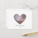 Nygifta pärl- och lila hjärtvykort Kan användas av nygifta för bröllopsannonseringar, smekmånader eller tack. Namnen på maken och makan samt visat bröllopsdatum kan anpassas efter önskemål.
