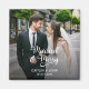 Fira parets första jul som ett gift par med denna fyrkantiga magnet med texten 'Gift och glad'. Denna prydnad har ett bröllopsfoto med en överlagring av parets namn och bröllopsdatum i vitt och orden 'Gift & Glad' i ett vackert skrivstil.