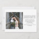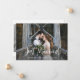 Det här enkla och stilrena bröllopskortet för elopement har ett personligt bröllopsfoto på framsidan, med orden "just married" i rustik, vit handskriven stil. Baksidan av kortet har plats för ytterligare ett foto, plus utrymme för att antingen utveckla detaljerna kring ert elopement eller ge information om en efterföljande bröllopsfest eller -firande. En elegant design som är det perfekta sättet att låta vänner och familj veta att ni precis har gift er!
