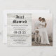 Nygifta Rustika Trä Foto Efter Bröllop Inbjudningar