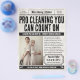 Rensa marknadsföring med den här vintage tidningen-stil-flygaren designad för hemtjänster. Den här anpassadet är en perfekt för att främja städning i bostäder, mäklartjänster och husdjursspecialer. Ut i ert grannskap med tidlös appell från stil och professionell.