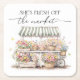 Lägg till en touch av charm till din bröllopsdusch med dessa "Nykomna Från Marknaden" Vattenfärg fyrkantiga Pappersunderlägg! Med en lekfull marknadsinspirerad design är de den perfekta detaljen för att komplettera din rustika, boho eller trädgårdsinspirerade fest.