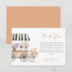 Uttryck tacksamhet med stil med detta charmiga akvarell tack-kort! Med en delikat pastellfärgad blomsterkärra och mjuka blomsterdekorationer ger denna design en touch av romantik och elegans till ditt hjärtliga meddelande. Perfekt för brudshower, bröllop och speciella tillfällen är detta vackert tillverkade kort ett underbart sätt att visa uppskattning för familj och vänner. Personifiera texten på insidan eller lämna den tom för en handskriven hälsning!