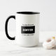 Denna anpassningsbara mugg för kaffefanatiker har anpassningsbar text som säger, “Nylagad Kaffe” och “Grädde och Socker.” Modifiera de tre textplatshållarna för att skapa en unik present för kaffefanatiker.