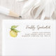 Lägg till en fräsch, glad touch till din examenspapper med denna akvarell citron returadressetikett. Den handmålade citrusillustrationen och den rena, moderna typografin skapar ett ljust, uppiggande utseende som fungerar vackert med annonseringar, inbjudningar och tack-kort. Anpassa namnet och adressen för att ge dina kuvert en polerad, koordinerad finishdetalj.