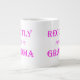 Nyligen befordrad till Grandma i rosa text med solid vit bakgrund. Texten skrivs ut på båda sidor så att det inte spelar någon roll om du är höger eller lämnat, så att du fortfarande kan visa pridet. Det här är ett JUMBO 20oz mugg som elak mindre tid och mer tid med ditt nya barnbarn. "nyligen befordrad till mormor", barnbarn, morföräldrar, firande, baby, joyous, tillfälle, lycklig, kaffe, te,