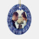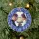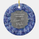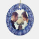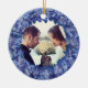 Digitalt Målat helgdag blue wandedeckin julprydnad för det nygifta paret. Foto på ena sidan och text på andra sidan med par namn och datum.