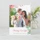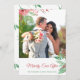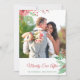 Julfotkort i ny gifta med sadellöv och rosa ros och bär och med redigerbart kalligrafiskt grönt.