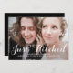 Modernt fotokortsdesign som gör en elegant bröllopsannons eller tackkort.