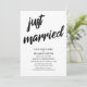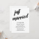Bjud in dina gäster till din bröllopsfest med hjälp av detta minimalistiska svarta och vita inbjudningskort. I designen har jag använt ett fetstilat, avslappnat, modernt script-font för att skapa en grafisk typografi-overlägg som lyder "just married". Fyll i mallens tomma fält med dina uppgifter för att anpassa designen. Alla lager lämnades upplåsta så att du också kan klicka för att ytterligare anpassa och flytta texten eller till och med ändra storlek eller teckensnitt. Bakgrundsfärgen är vit men även denna går att redigera; byt ut den mot en av dina bröllopsfärger om du föredrar det. //