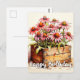 Det här glada vykortet visar livfulla asterblommor inuti en träbox. Du är välkommen att justera alla tillgängliga alternativ som du önskar.