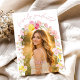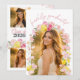 Fira klassen 2026 med denna examensinvitation och examensmeddelande mall med mjuka rosa blommor, färska citronaccents och en modern fotolayout som du enkelt kan anpassa!