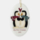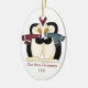 Fint ovala prydnadsföremål med primitiv land-teckning av två kärleksfulla fågelpenguiner, med scarfs på. Vår första jul 2010 under pingviner. Baksidan är helröd med vit anpassningsbar. Anpassa all text för att läsa vad du vill. Underbart minnesprydnadsföremål för nylingarna.