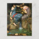 John William Waterhouse Nymphs Finding the Head of Orpheus vycard. Den engelske konstnären John William Waterhouse ägnade många målningar åt den mytologiska karaktären Orpheus. Nymphs att hitta Orpheus chef är en av hans mest dramatiska. I målningen visas två nyfikna nympher sitta med ett litet vattenfall som tittar på Orpheus huvud när det flyter i bassäng i vatten bland de lila dynorna. En vacker gåva till fläkt av John William Waterhouse, Mythological Paintings, Orpheus och Fantasy Art.