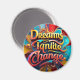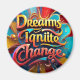 En sjudande design med texten "Dreams Ignite Change" i ett snyggt matris av färg, accentuerad med gyllene beröring som liknar stjärnor. Den djärva typografin omges av abstrakter och snurrar mönster som symboliserar kreativitetens kraft och potential. Biet inspirerar tittarna att anamma sina ambitioner och omvandla dem till verklighet."Originalbilden skapades av Meta AI. AI skapade teckningar. Licensierad enligt CC BY-SA 4.0.