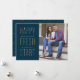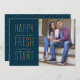 Skicka färglöst och glad nyårskort hälsning med det här enfotokortet som säger "Lycklig Fresh Start" i modern stil på en marin blå bakgrund. Den färgstarka prickade bakgrunden innehåller utrymme för att meddela att man ska flytta till ett nytt hem (eller meddela stora nyheter - nytt jobb, nyfödd bebis osv.). Perfekt för att fira sak nytt och spännande 2022.