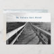 Kusttemat nya adress anmälningskort. Platta kort har text och bilder på båda sidor. En träkardpromenadbild i svartvitt på framsidan, med en mörk blått textrad överst. Lägg till mer information på baksidan av kortet över en strandscen med en stor snäcka tvättat upp.