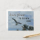 vykort för ny adress flytta. På framsidan finns en flygande person framför ett delvis grumligt blå himmel och som skjuter över handflatan träd. I två färg och två typer av typografi är: Vi har "flugit" till vårt nya hem! På baksidan finns ett ställe som kan personifiera adress, mobilt nummer, namn, enskilda familjemedlemmar namn och en speciell anmärkning.