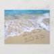 Nytt år 2026 text i våt strandsand med skummande bränningar som tack till kunder från företag