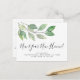Detta stilrena flyttkort är dekorerat med enkla vattenfärgade blad i olika gröna nyanser.