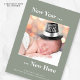 Nytt års meddelande om ny fotosålder här - Grönt. Tillgänglig digitalt och utskriven. Ert nyfödd bebis har kommit i tid för att se det nya året! Du kommer att skjuta för att meddela dina kära. Du kan önska dem en Gott nytt år samtidigt med den här moderna roligten New Year, New Now, som är helt anpassade tillsammans med din favoritbild av din nya son. Favoritfotot är i fyrkantigt format i mitten, med mycket tomt utrymme runt det för en contemporary. Anpassa enkelt texten på framsidan och baksidan med din egen, inklusive all information om din nya ankomst på baksidan, och byt bara ut exempelfotot i mallplatshållaren mot ditt eget. Du kan också ändra bakgrund och färg på båda sidor om du vill genom att anpassa ytterligare.