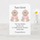 Nyfödda baby twin-flickor med hälsningskort som du kan anpassa med valfri text. Om du behöver hjälp med att anpassa kontaktar du oss genom länken på den här sidan. Tvillingflickor nytt fött hälsningskort.