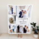 En anpassningsbar keepsaksfilt för nyfödda med 9 fotosamlingar av din bröllopsdag, smekmånad, förlovning osv. och ditt namn och bröllop-datum i elegant-serif-typografi. Du kan ändra bakgrunden till färg genom att redigera den i verktyg.