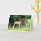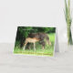Ett hälsningskort för Grattisar för säker ankomst av en ny föl med ett foto av en föl och sto. Blanka för ditt eget meddelande.