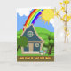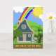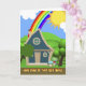 Ett nytt hälsningskort för hemmet med tecknad, träd och roligt