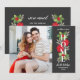Denna moderna blommigt-typografi - julkort för nya dubblor till husägare - som ett flytta annonskort! Meddela din ny adress till familj och vänner i början av helgdag. Eleganten har ett foto intill en vinter-blommigt och en grön vattenfärgsdesign med enkel och modern "Home"-textövertäckning. Omfattar löv och bär från holly, blommor från poinsettia och bladblomma grenar. Anpassningsbarnas ordalydelse omfattar "vi har ett nytt hem för helgdagarna" tillsammans med texten på framsidan och baksidan som kan vara personlig. Mörk kol grått bakgrund med rött, grönt och vitt färg.
