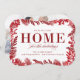 nyheter om er senaste åtgärd med det här helgdag tillkännagivandet! Med ett familjefoto och frasen "vi är i ett nytt hem för helgdagarna" accentuerad med hand plockade greenery på framsidan och på framsidan och på plats för ett längre helgdag nyhetsbrev på baksidan.