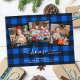 Det finns ingen ställe som hemma för helgdagarna. Låt vänner och familj få veta hur du rör dig den här julhelgen med den här 3 fotokollagen på den orustiska blåa och svarta buffel plaid. Anpassa det här meddelandet om flytta med dina 3 favoritfoton, namn och nytt adress. COPYRIGHT © 2020 Judy Burrows, Black Hund Art - Med alla Höger reserverade. Nytt hem-Helgdag 3-fotoblått kort för Flytta