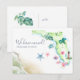 Livliga botaniska akvarell-rörelseannonser låter vänner och familj veta om ditt nya hem ljuva hem! Designen har en kopia av min ursprungliga handmålade akvarellstat Florida med havssköldpadda, palmer, sjärnstjärna, flamingos, Jupiter fyr, lejonfisk och monstera palmblad i tropiska nyanser av rosa, blå, turkos och grön. Din anpassade annons (visas med "vi har flyttat"), ditt/dina namn och adressändringsdetaljer är satta i en handskriven script-typografi och traditionell sans-serif-teckensnitt i en rik marinblå färg. Lägg till ett personligt meddelande till vänner och familj på baksidan av detta Florida-kustkort med utrymme för ditt frimärke och mottagaradress. Letar du efter en digital fil? Jag kan hjälpa