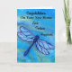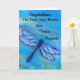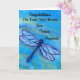 Ge gratulationer för ett nytt hem med detta moderna blå drakflygande kort. Skapat från min ursprungliga akvarellmålning, den djärva färgen och dramatiska insektsbilden sänder ett uppriktigt meddelande för glädjefull kärlek, god lycka och år av lycka.