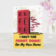 Nyhet om hem och adress, pappert hälsningskort. En röd ytterdörr är stängd eller stängd. Har ett sött meddelande inuti. Jag stängde ytterdörren! Ändra den undre texten på omslaget och lägg till nya adress inuti. Art, bild och versell copyright © Shoaff Ballanger Studios, 2024.