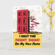 Nyhet om hem och adress, pappert hälsningskort. En röd ytterdörr är stängd eller stängd. Har ett sött meddelande inuti. Jag stängde ytterdörren! På mitt nya hem. Redigera omslagstexten, understreck och lägg till nya adress inuti. Art, bild och versell copyright © Shoaff Ballanger Studios, 2024.