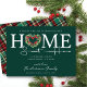 Det här festliga tillkännagivandet om flytta innehåller ordspråket "Holiday Greetings from The New Home Sweet Home Home" med en hjärtkrans som är hugg och berry och som sätts in mot gröntens bakgrund. Meddelandet är perfekt för att skicka till vänner och familj under julhelgen för att informera dem om din ny adress. På meddelandets framsida står ordspråket och kransen, och på meddelandets baksida finns en samordnande grönt och rödhårig mönster. Den övergripande utformningen är festlig och inbjuder, och tillkännagivandet kommer säkert att le på ansikte till era kära.
