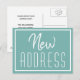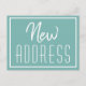 Vackert meddelande om flytta med Nyare adress vykort för en flytta till ett nytt hem. En tealtypografi flyttat kort för att meddela dina nya kontaktuppgifter.