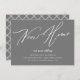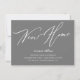 Grått New Home ny adress-meddelande med ett modernt skriptteckensnitt med en koordinerande plaid back for a extra touch.