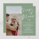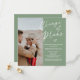 Modern, elegant fotodesign med en sage grönt-bakgrund som snabbt och enkelt informerar gäster och närstående om din ändring av bröllop-planer och schemalägger om datum. Mallen är helt redigerbar och du kan ersätta den med ditt personliga foto, namn, nytt data och annan viktig information.