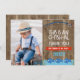 Letar du efter ett O-Fish-icellt foto tack-kort för din lilla pojkes gäster? Den här designen kanske är vad du letar efter. Denna design har en fiskespö, tre fiskar, lite bomullssvans och en banner på en falsk träbakgrundsbild. Din lilla pojkes foto visas på vänster sida av designen. Detta O-Fish-icella tack-kort för pojkar är redo att anpassas.
