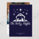 Enkel och vacker O heliga natt -typografi med julkrubba på marinblå bakgrund. Utrymme för ditt familjenamn och år samt familjefoto och kort meddelande på baksidan. Se koordinerade artiklar i vår butik, Enchanted Finch.