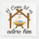 Baby Jesus i mangaren med texten "O Kom Let us Adore Him".