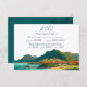 Inkludera en OSA kort med din bröllopsinbjudan, komplett med en hawaiisk illustration av kusten som innehåller havet, bergen och stranden på kortets framsida, och en teal handflatan träd på baksidan.