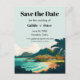 På så sätt kan du spara datumet på vykortet med de ikoniska strand- och bergsvyerna som visas kusten i Oahu på Hawaii. All text kan redigeras för att passa personligens behov.