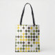 Den här bilden visningar en färgstark, upprepande diagonal mönster med alternerande färg - djup lila, magenta, orange, gult och oliv grönt - som ställs in mot en vit bakgrund. Rutorna är placerade i en diagonal, rutnätsliknande form som skapar en slående synlig påminnelse om klassisk harlequin eller vintage av textildesign