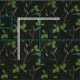 Målade hjortar, ekar och löv på mycket mörk grönt texturerad bakgrund.